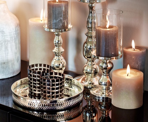 Material – Glas, Versilbertt, anlaufgeschützt, Stumpenkerze